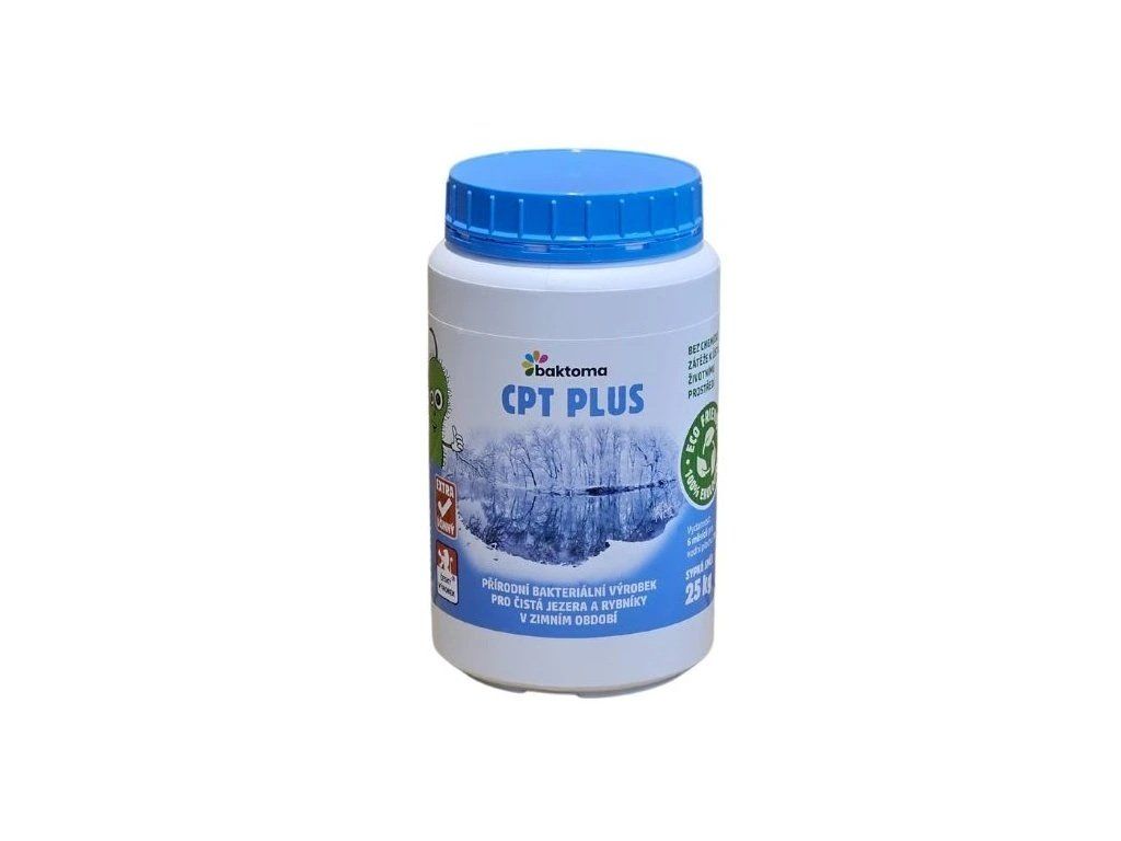 Přípravek CPT PLUS je směs bakteriálních spór, enzymů a živin nutných pro činnost mikroorganismů. Výrobek obsahuje speciální bakterie, které jsou schopny rozkládat organické znečištění již od teploty vody 1,7°C. Účelem používání prostředku CPT Plus je odstranění bahna, sinic a zvýšení obsahu kyslíku ve vodním sloupci ve Vašem rybníku nebo jezeře. Působením přípravku v jezeru a rybníku je rozklad a odstranění organických usazenin a organického bahna na dně i ve vodním sloupci pomocí vysoce mobilních přírodních nemodifikovaných aerobních bakterií a fakultativních anaerobních bakterií s pozitivní chemotaxou (mohou rozpoznat typ chemického odpadu a plavat k němu). Zároveň dochází k výraznému snížení fosforu a chlorofylu A, který je měřítkem koncentrace řas (likviduje látky podporující růst řas a tvorbu sinic), fosfátů a zakalení ve vodním sloupci. Odstranění fosfátů má za následek odstranění sinic a dochází ke zvýšení obsahu kyslíku ve vodě. Při pravidelném používání přípravku CPT PLUS dochází k reprodukci bakterií, což má za následek nepřetržité čištění jezer a rybníků. Dochází k odstranění oragnického bahna a není třeba drahé vybagrování a odvoz bahna ze dna rybníku.